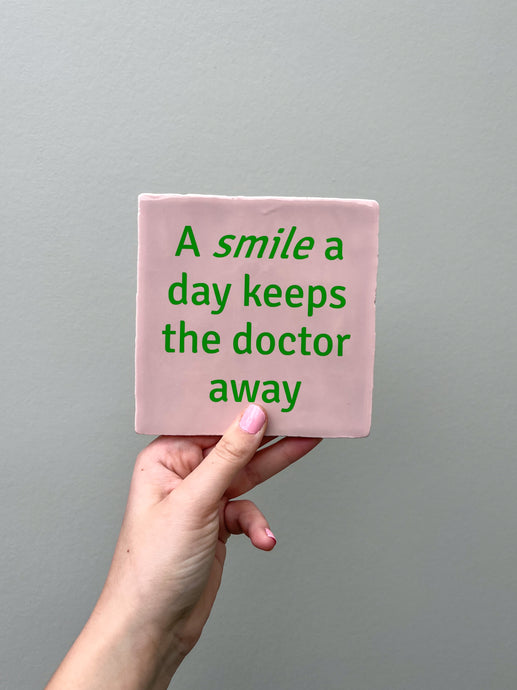 Tegeltje - Roze - A smile a day keeps the doctor away